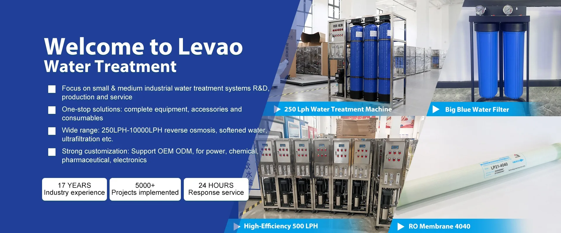 LEVAO Water Treatment Machinery Equipment Co., Ltd. has been focusing on the research and development, production, and supporting services of industrial water treatment systems since 2008. We are committed to providing customers with one-stop solutions from complete equipment to accessories and consumables. We are a modern high-tech enterprise specializing in the research and development, production, sales, and service of industrial water treatment machinery products. Our factory integrates technology research and development, intelligent manufacturing, and engineering services, covering a full range of water treatment equipment such as 250LPH-10000LPH industrial reverse osmosis water treatment machinery, softened water equipment, ultrafiltration devices, etc. We support OEM ODM and our products meet the diversified needs of industries such as power, chemical, pharmaceutical, and electronics.